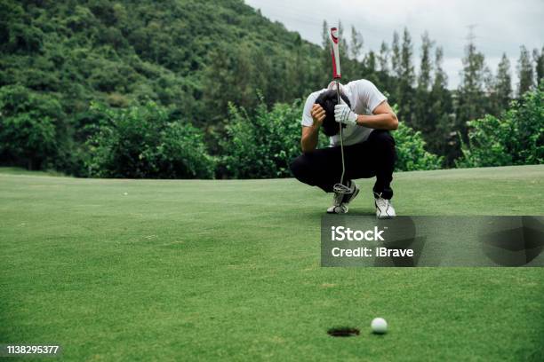 Stress Golfer sit sad about losing on the golf course. failure idea concept.